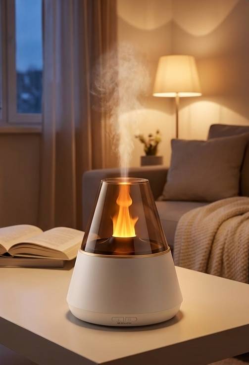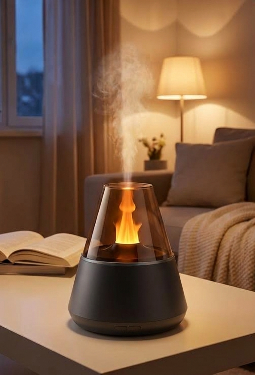 No. It’s a calibrated LED + mist effect designed to mimic the warm ambience of a candle or fireplace, without heat, smoke, or fire risk.