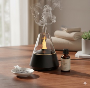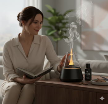The Noeme EmberGlow™ diffuser transforms any corner of your home into a quiet ritual. A soft, flickering flame dances above a fine aromatherapy mist, creating a warm pulse of calm without smoke or candles. Designed for modern minimalist spaces, it brings scent, light and stillness together in a single object — turning everyday moments into something gentler, slower, and more intentional.