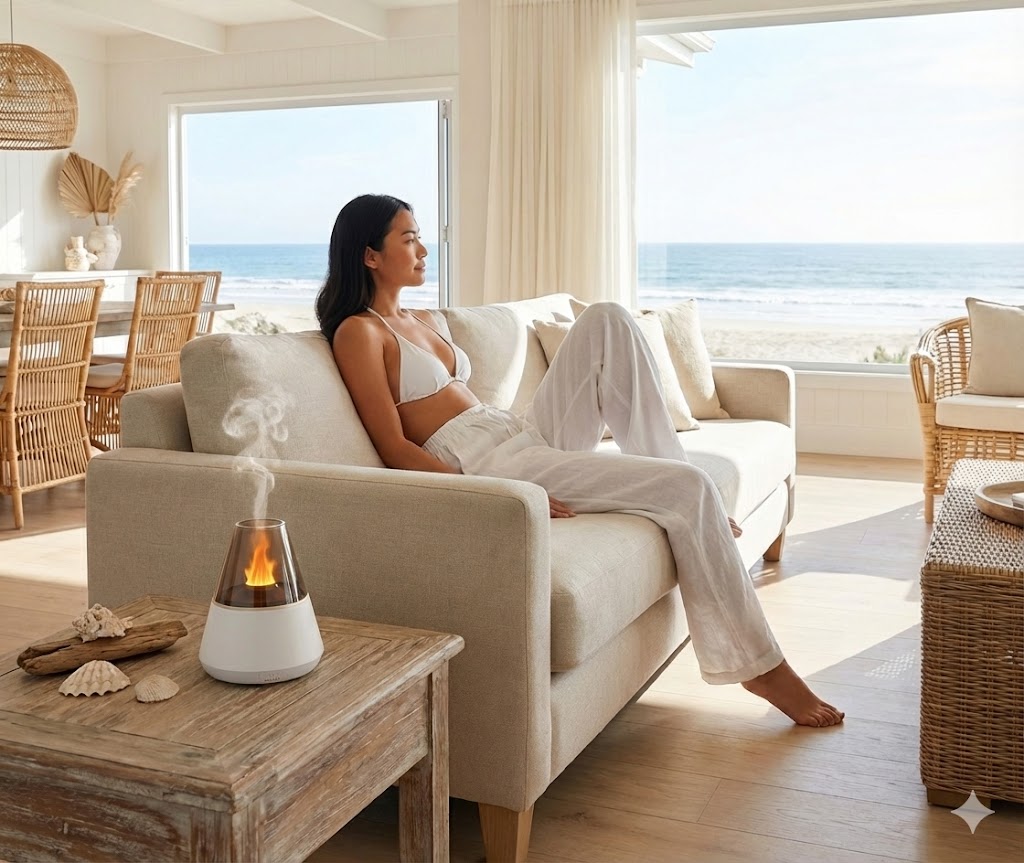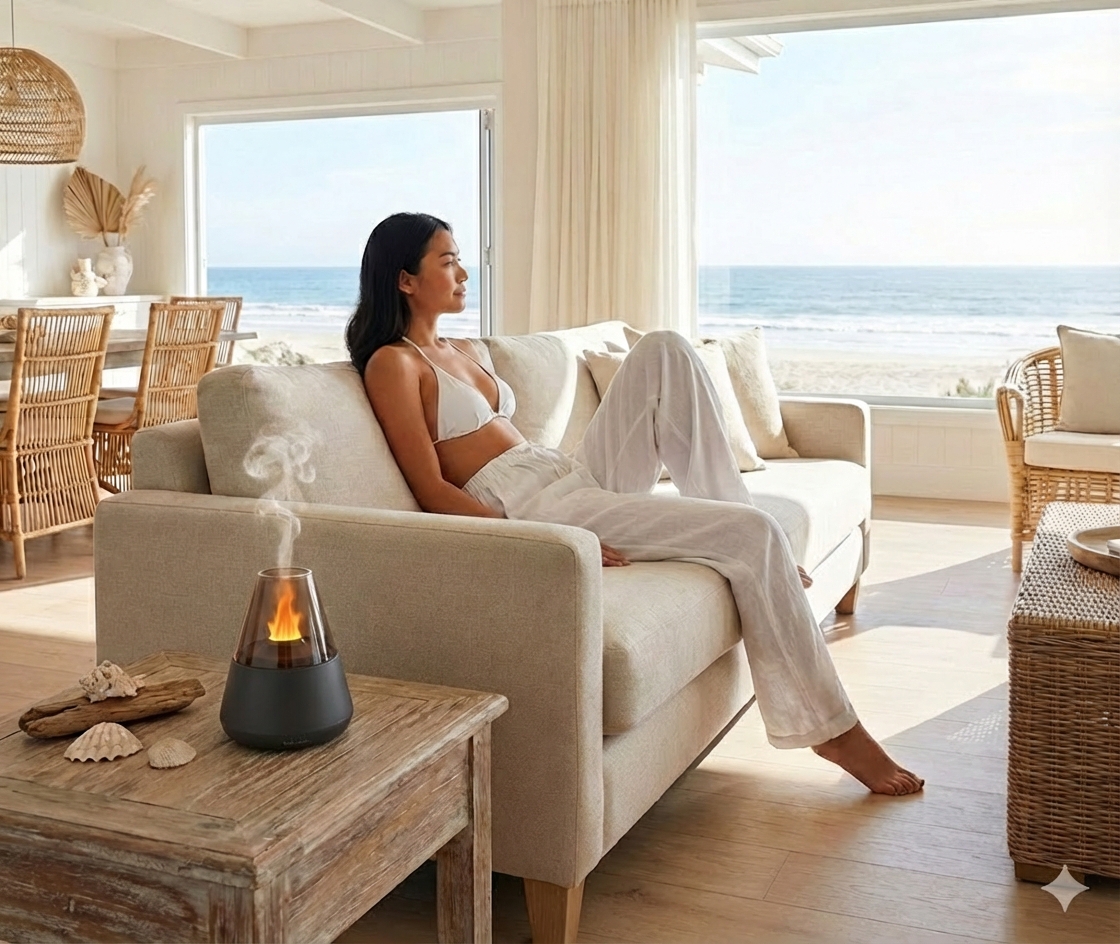 The low-resonance motor and ultrasonic plate operate below 35 decibels, making it ideal for bedrooms, nurseries, workspaces, and meditation.